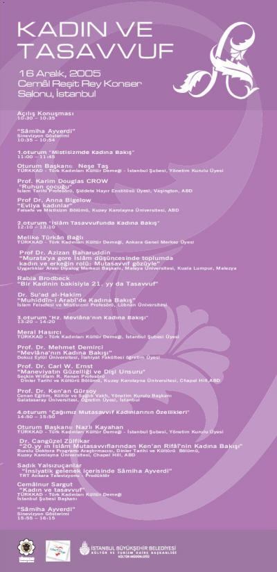 KADIN VE TASAVVUF SEMPOZYUMU 16 Aralık 2005 Cemal Reşit Rey Konser Salonu, İstanbul